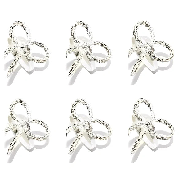 Jogo de 6 anéis de guardanapo feitos em metal resistente. Disponíveis em 4 modelos, cada um com 3 variantes de cores diferentes para combinar com sua ocasião ou decoração. Os anéis são lindos, com um acabamento impecável e um charme encantador para transformar seus momentos à mesa em pura elegância.