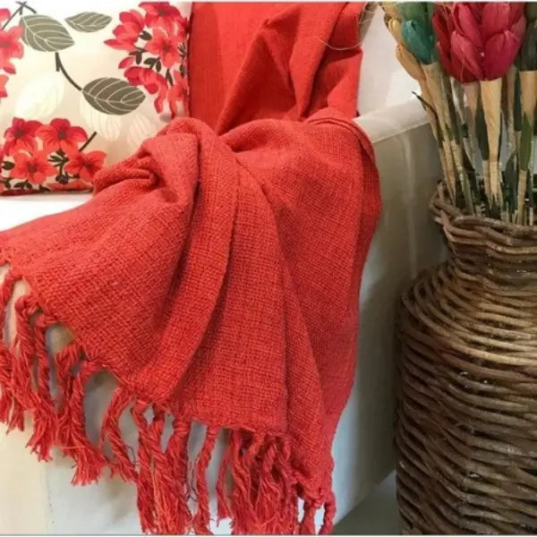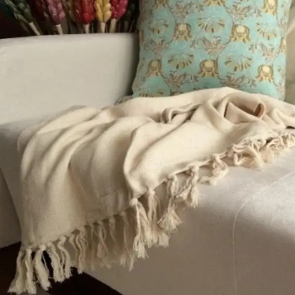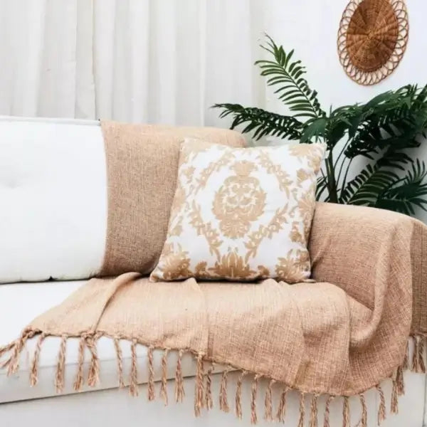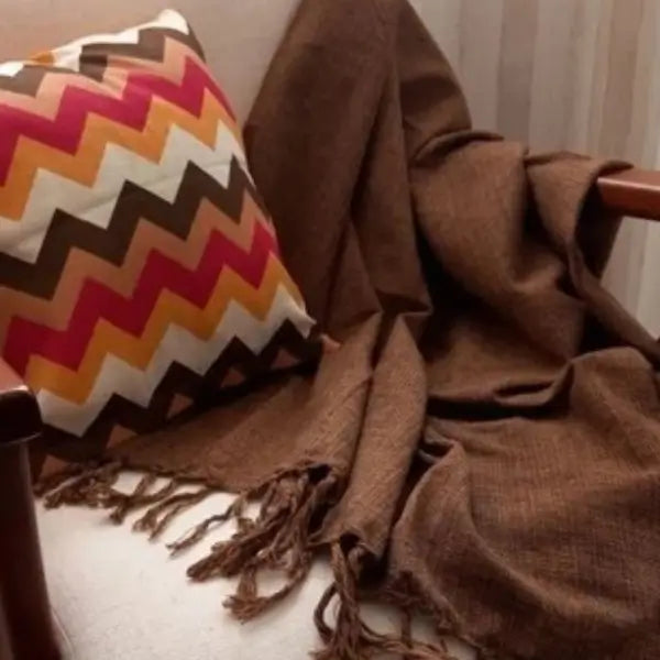 Seu design artesanal com franjas e acabamento rústico adiciona um toque de elegância tanto na cama, no sofá ou como peseira.